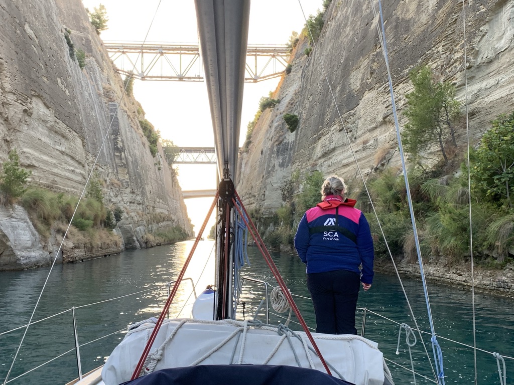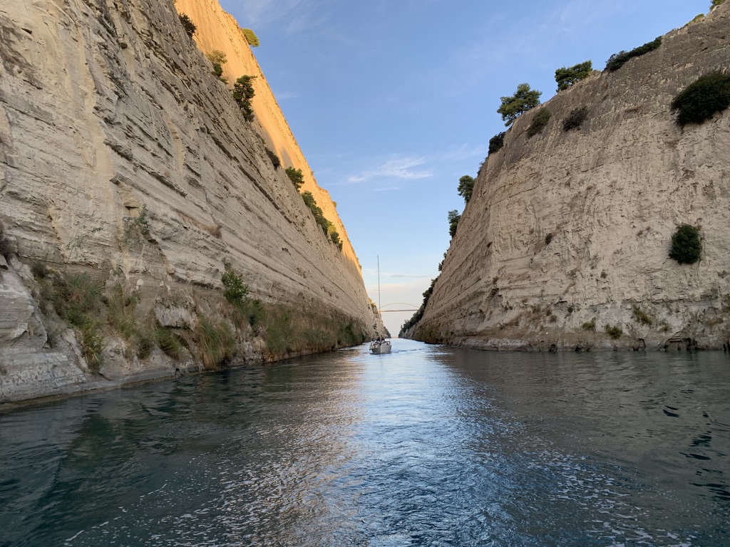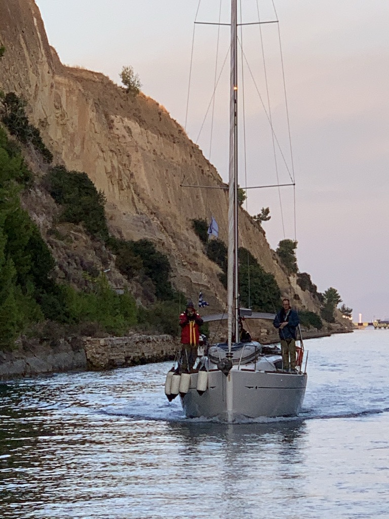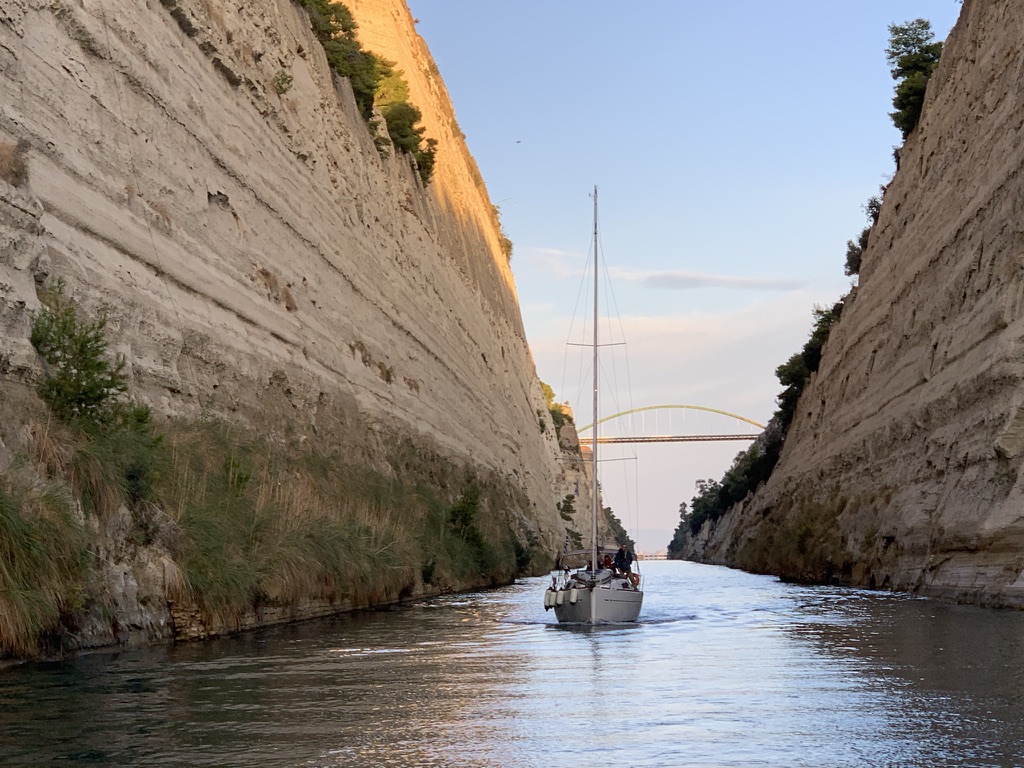 The Corinth canal is always a great sailing experience. Canal control alternate eastbound and westbound traffic so you have to hang around the entrance keeping a radio watch to learn when you can start going through. Then they are constantly on the radio nagging you to go faster!