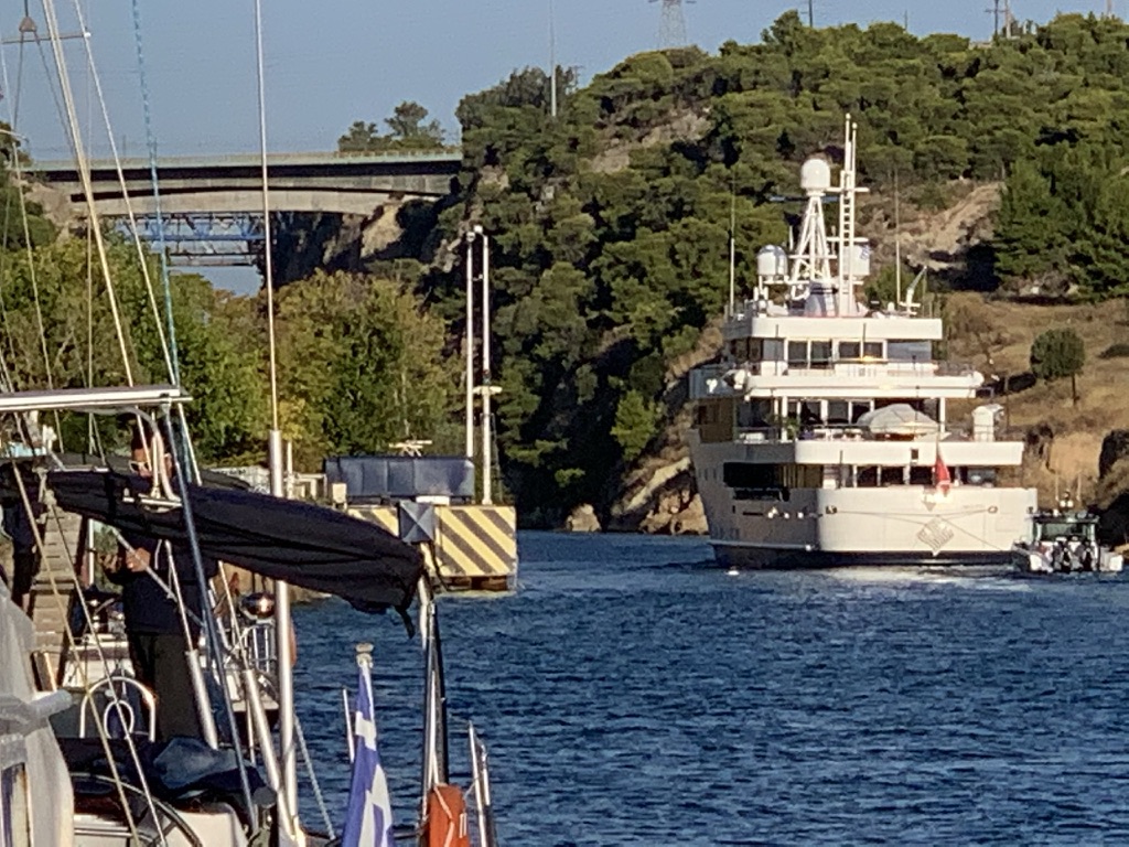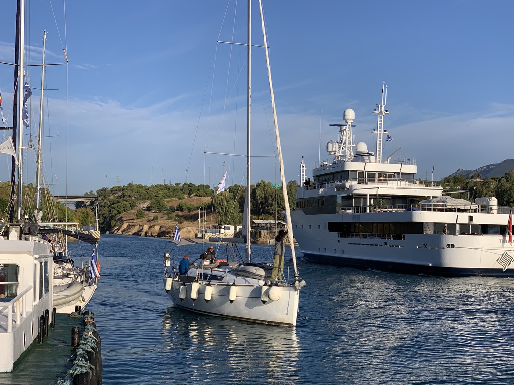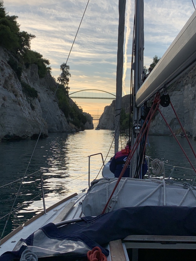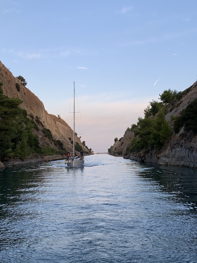The Corinth canal is always a great sailing experience. Canal control alternate eastbound and westbound traffic so you have to hang around the entrance keeping a radio watch to learn when you can start going through. Then they are constantly on the radio nagging you to go faster!