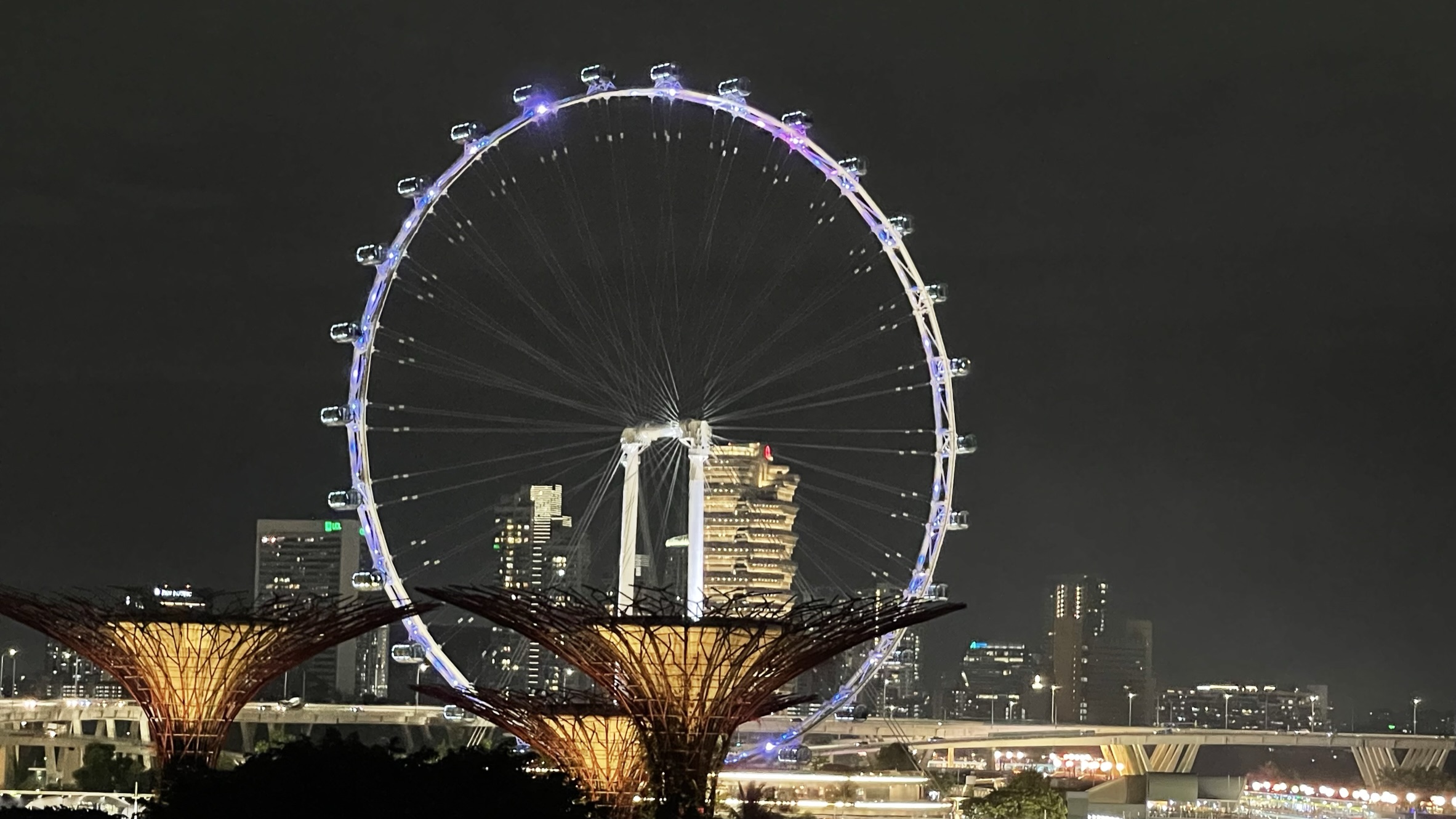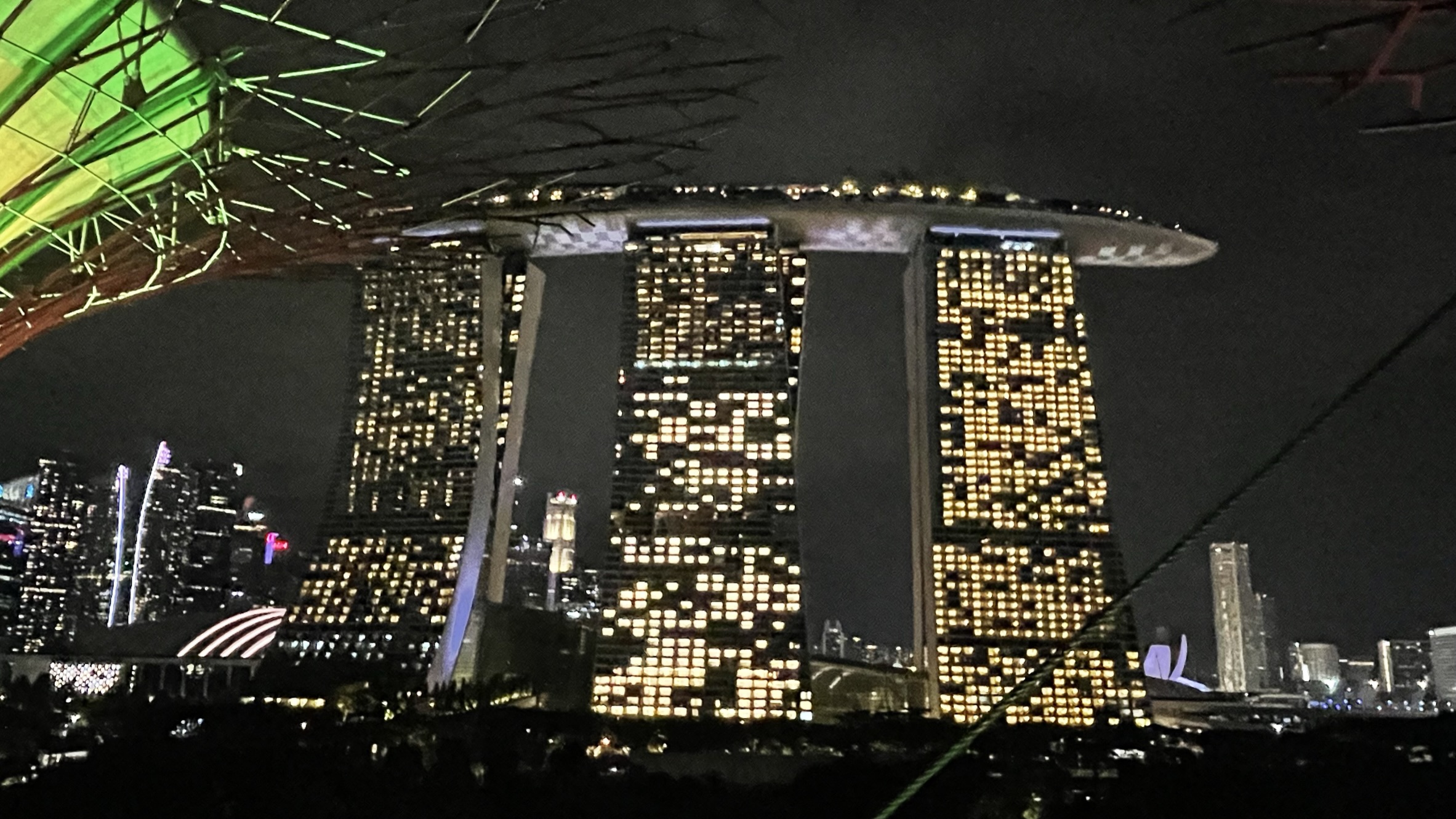 So that moment passed too. By the time we got to Singapore I figured this was the last chance and that the Observation Deck of the Marina Bay Sands Hotel would be a memorable and spectacular location. But then we found it was closed! So I suggested Raffles Hotel and Debbie refused because she wanted to go there when she was freshly showered so would rather do it tomorrow. In desperation I pointed out that the next day we were going to the Grand Prix and wouldn’t have chance, so she reluctantly agreed.